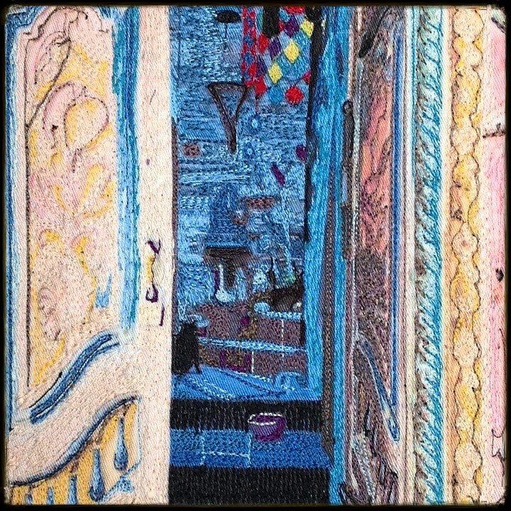 This thread painted scenery of the indoors of an Egyptian house, shows the richness in colors and designs the Egyptian people use to embellish their houses.